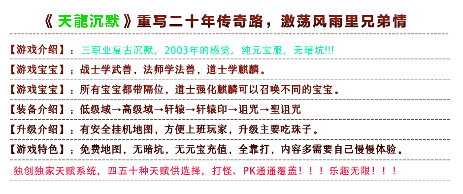 天龙沉默-献给热爱怀念的骨灰玩家